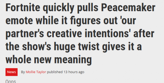 Epic Games官方社区今日突发公告,确认已从《堡垒之夜》中紧急下架了与DC超英喜剧《和平使者》联动的经典动态表情"舞蹈小队"。这个爆火的表情完美复刻了剧中主角团第二季开场的魔性尬舞,原本是本次联动最热门的道具。