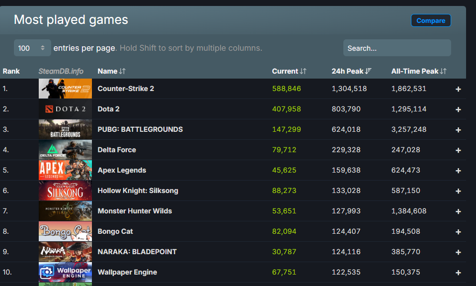 根据SteamDB最新数据,这次联动更新直接让《怪物猎人:荒野》的24小时在线峰值飙升至127,993人!成功杀回Steam人气榜TOP10!在付费游戏排行榜上更是仅次于《空洞骑士:丝之歌》位居第二!看来即便顶着差评压力,猎人们还是抵挡不住联动内容的诱惑啊!