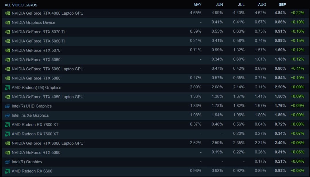2025年9月Steam硬件调查报告深度解析:显卡、CPU市场迎来关键转折