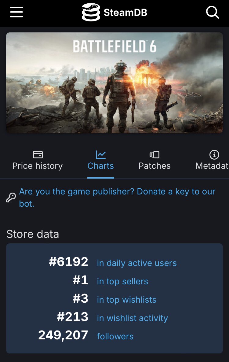 目前《战地6》已同时占据Steam全球销量榜榜首和热门游戏榜首位,玩家期待值爆表!