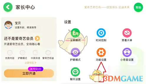 1、打开爱奇艺奇巴布后,点击左下角的【家长中心】