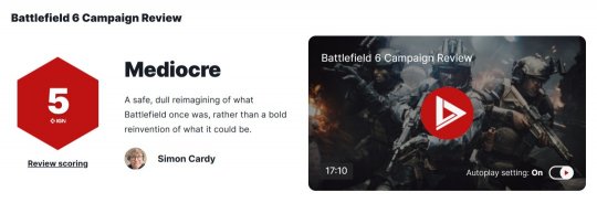 《战地6》单人战役遭遇滑铁卢!IGN仅给出5分差评,直言这是系列最平庸的单人体验。虽然PS5版在Metacritic收获84分不错成绩,但战役模式的乏味设计让老玩家们大失所望。