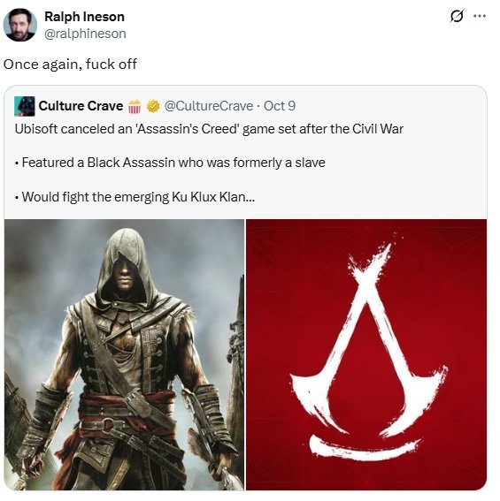 消息一出立即引发玩家社区地震。Reddit论坛相关话题24小时内获得5.7万点赞,多数玩家认为育碧在《刺客信条:影》遭遇种族争议后选择退缩,既是对创作自由的背叛,也错失了用游戏探讨种族议题的绝佳机会。更讽刺的是,育碧此前在《看门狗2》《孤岛惊魂6》等作品中都曾大胆涉及社会敏感话题。