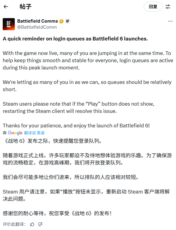 面对汹涌的玩家潮,开发团队Dice迅速做出回应,表示当前的排队机制是临时措施,主要目的是维持服务器稳定、保证整体游戏体验。他们强调,玩家不需要等待过长时间,一旦系统负荷缓解,即可顺畅进入战场。