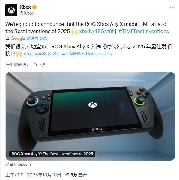 打破平台壁垒!ROG Xbox Ally X掌机斩获《时代周刊》2025年度最佳发明