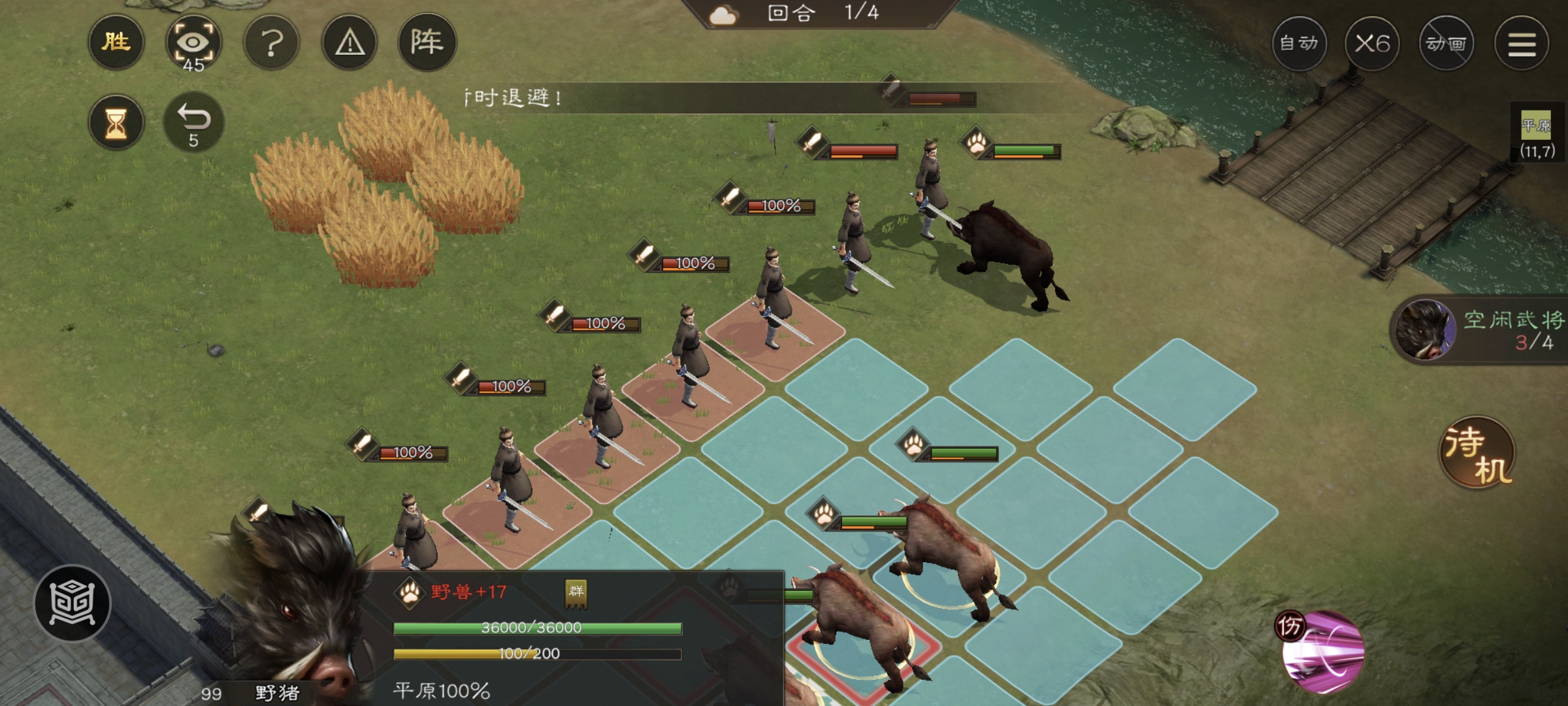 1. 所有野猪向左移动,集中攻击左侧目标