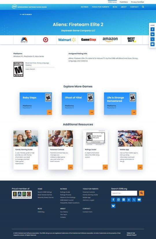外媒Gematsu挖到了猛料!他们在ESRB官网上发现了《异形:火力小队2》的M级(17+)评级,虽然现在页面已经被撤下,但截图显示续作将延续系列标志性的暴力美学 - 血浆四溅的战斗场面、成人向的粗口对话,还有那些让人毛骨悚然的异形虐杀场景,简直完美还原了《异形》宇宙的恐怖氛围!