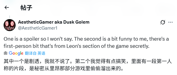 Dusk Golem透露,虽然官方宣传中刻意隐藏了里昂的身影,但细心的玩家其实已经在首支预告中发现了两个关键彩蛋: