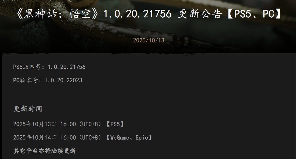 10月13日,备受期待的国产3A大作《黑神话:悟空》发布了最新大型优化补丁的详细内容。游戏科学团队表示各平台将陆续推送更新,其中PS5版本已于公告当日率先更新,而PC端补丁也在次日(10月14日)正式上线。