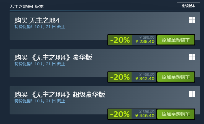 发售才一个多月,《无主之地4》居然就在Steam上开启限时八折促销了!活动将持续到10月20日,标准版、豪华版和终极豪华版全部参与打折,这波操作让不少首发玩家直呼“被背刺”。