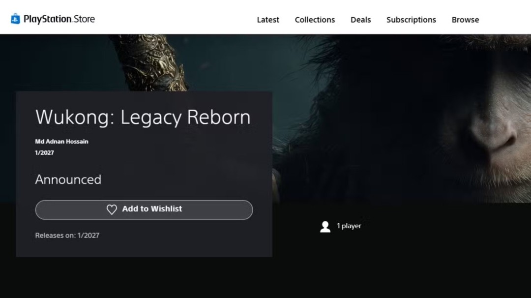 最近,又有一款名叫《悟空:重生传奇》(《Wukong: Legacy Reborn》)的游戏悄悄登陆PS商店。它不仅名字刻意贴近《黑神话:悟空》,主视觉图更直接用上了一只猿猴形象,整体排版和风格都与正版商店页面极其相似——明摆着想误导消费者,让人以为它和游戏科学在2024年推出的现象级动作游戏《黑神话:悟空》有什么关系。