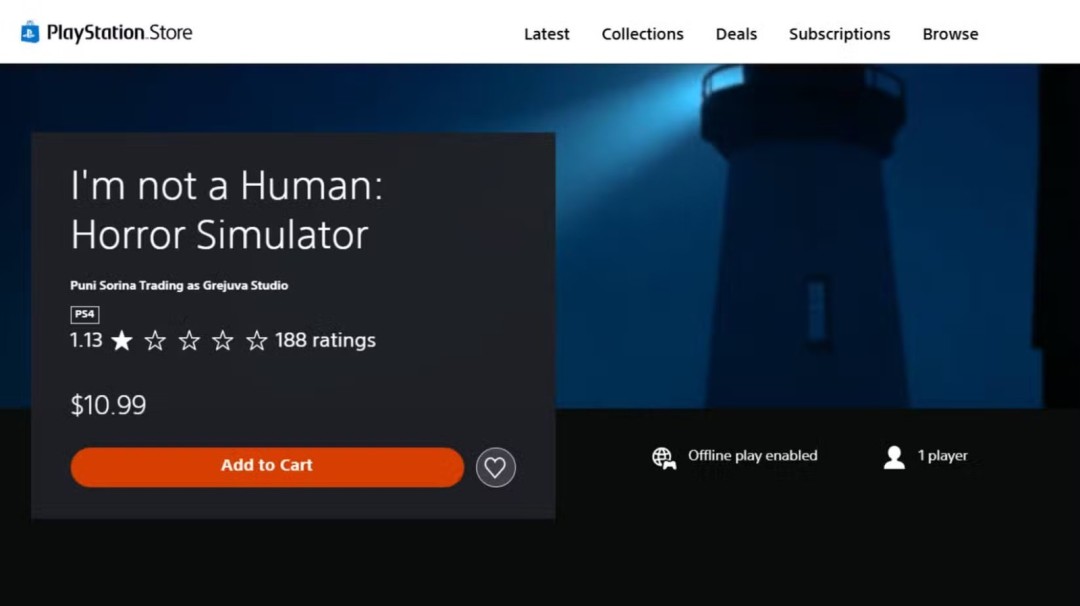 目前唯一值得庆幸的是,这款山寨“悟空”还没有开放购买,只能加入愿望单。但另一款叫《我不是人类:恐怖模拟器》(《I'm not a Human: Horror Simulator》)的山寨作就已经开始在PS商店上获利了。它明显是在模仿近期热度很高的独立游戏《寻找伪人》(《No, I'm not a Human》),起这种混淆视听的名称,摆明了就是想骗不知情的玩家误购。