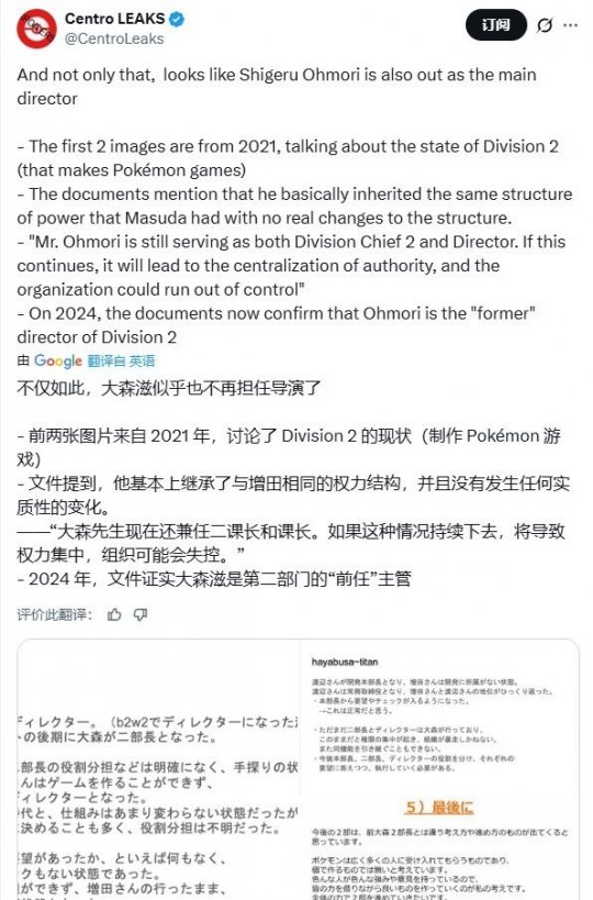 而最劲爆的还在后面:文件显示,大森滋已在2024年被调离第二事业部总监一职——这个部门正是专门负责宝可梦正统作品的开发。这意味着,统治了宝可梦26年的两位总监时代,正式落幕。