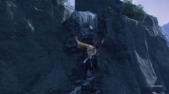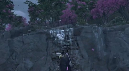 RossTweetsGames分享的游戏片段中可以看到,当主角接近这些白色表面并开始攀爬时,一群鸟突然惊飞——它们正是这些“标记”的制造者。原来,这并非什么神秘组织留下的路标,而只是羊蹄山的鸟类“偏爱”在可攀岩的区域排便,意外成了玩家的引路系统。