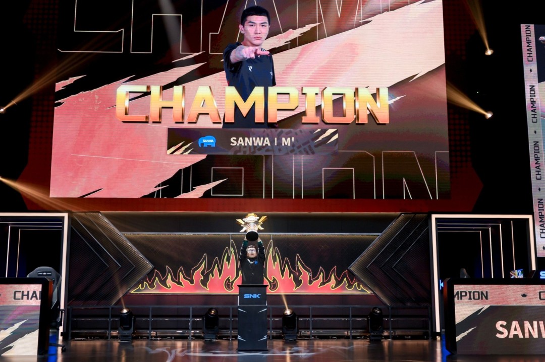 在压轴进行的《拳皇15》单败BO7冠军战中,卫冕冠军SANWA|M' 与韩国猛将CR|Madkof上演了一场极限心理博弈。最终M'以4:2强势拿下比赛,成功卫冕,将12万元奖金及冠军奖杯收入囊中!CR|Madkof与DRG|XingChen分获二、三名。