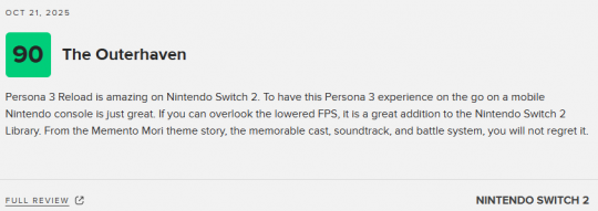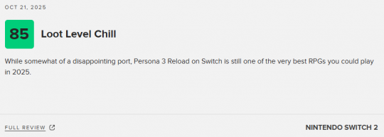 尽管移植技术上略有妥协,但《女神异闻录3:Reload》仍然是2025年Switch2上最值得玩的RPG之一,内容扎实、剧情深入人心。