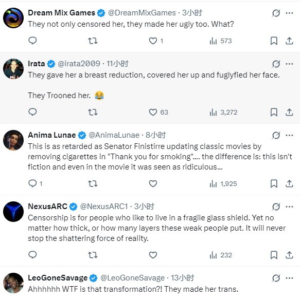 "这种过度审查正在毁掉游戏的艺术性,我们想要的是原汁原味的重制,而不是被阉割的版本。"