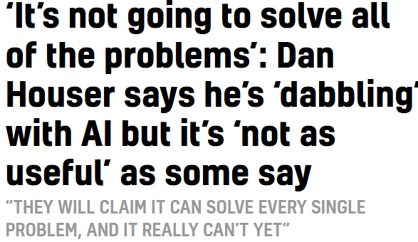 Dan直言,虽然AI公司总爱画大饼,吹AI能大幅提升效率、降低成本,但现实是——真正能落地、对开发有实质性帮助的AI工具并不多。在他看来,AI根本没法解决游戏创作中最核心的问题:讲故事、塑造角色、打造沉浸感。别指望AI替你写出一个《荒野大镖客2》级别的剧本。