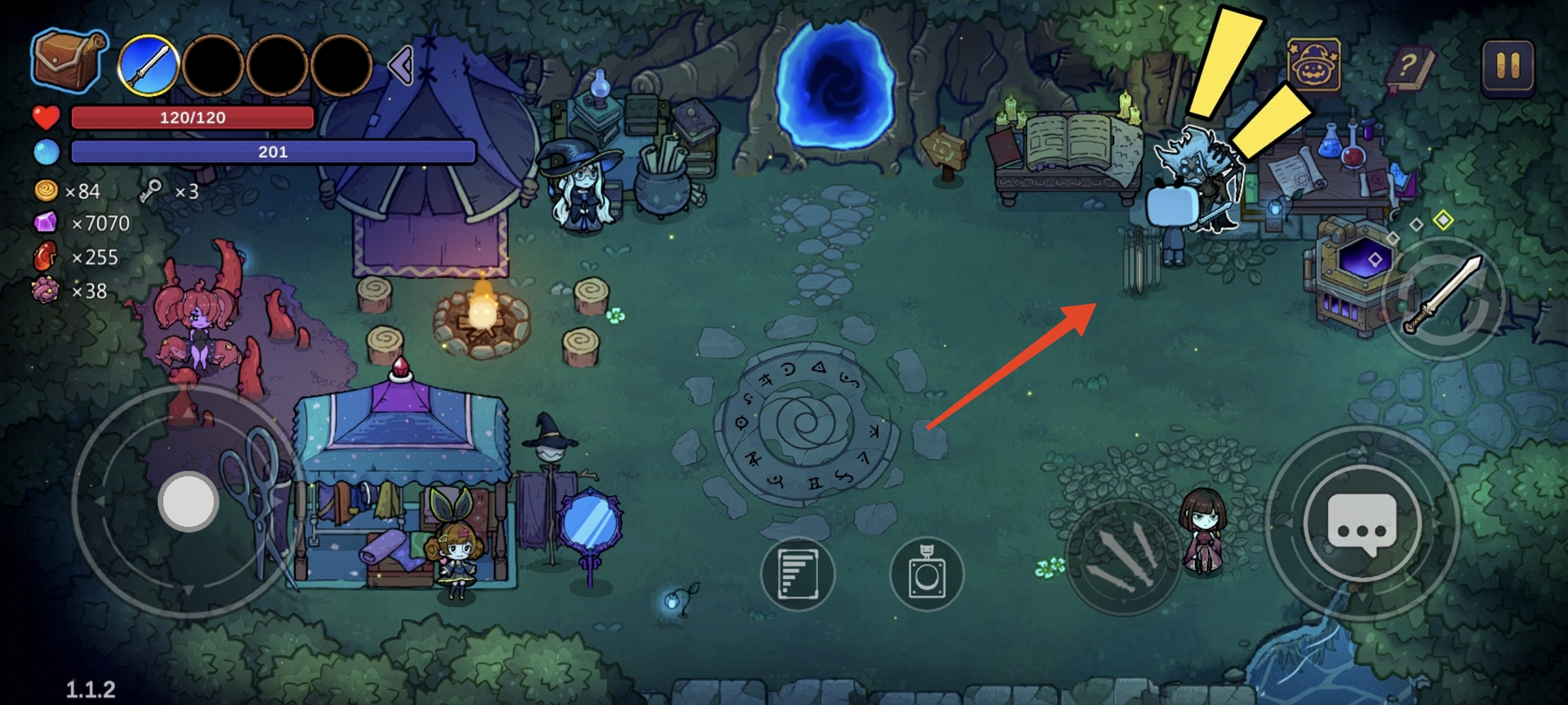 这样在去到第三关【朝圣者走廊】的时候,地图地面上会刷一个橙色的大坑,里边还有很多小手会招摇着说“大爷来玩啊~”,这个就是【食腐舌簇】,我们站在旁边放下一个法术当x资,它就会给你一些你想要的。